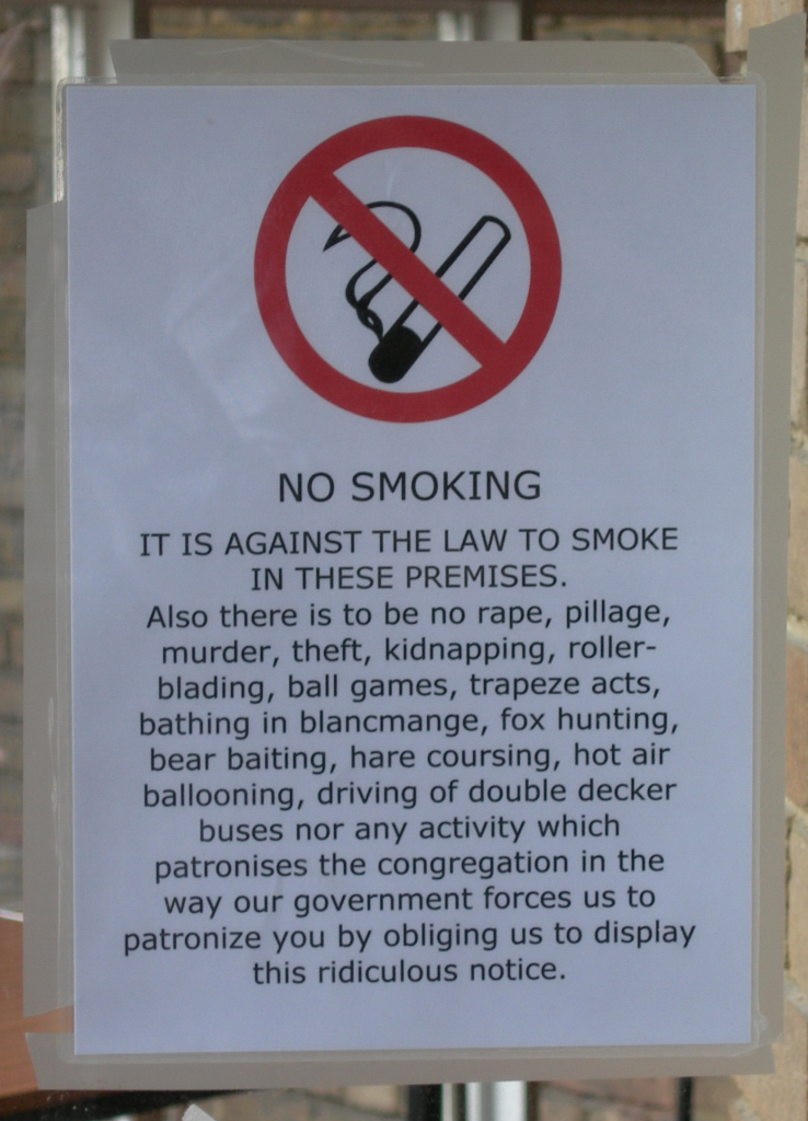 No smoking. And soon, no drinking and no talking!