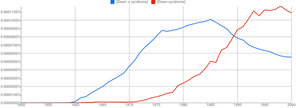 Certainly it’s a small sample, and I haven’t taken into account that many illnesses aren’t universally termed diseases, syndromes etc. Still one thing that seems clear is that there’s most confusion when there’s elision going on. Alzheimer’s disease is widely favoured over Alzheimer disease: there’s a clear ’s’ sound in the term, and in my experience it’s very often shortened to merely Alzheimer’s. The ’s’ in Down’s syndrome, on the other hand, goes unheard and as a result has lost ground over the years to the now more common Down syndrome. I’ve never heard anyone say that someone simply had Down’s.